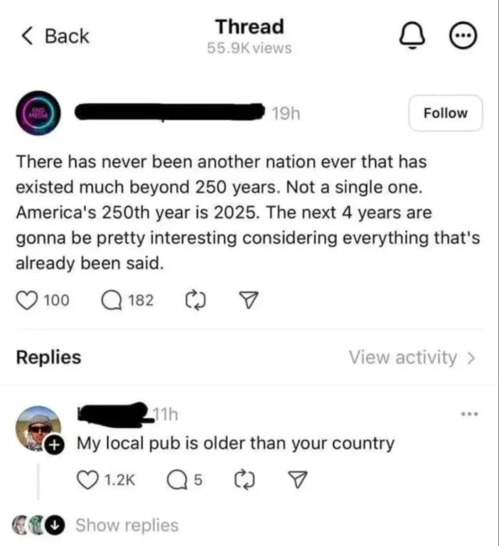 That being said, applying that standard to other governments shows that plenty of other governments have been in place for longer. In the UK, the relationship between parliament and the crown have evolved over the years, including periods of violence and usurpation and even the occasional regicide, but the basic framework is that truce of competing bases of power agreeing to share that power, or distributing that power (see all the independent nations that have emerged from that British empire), such that the government of the UK can truly be traced back far longer than the government of the United States.