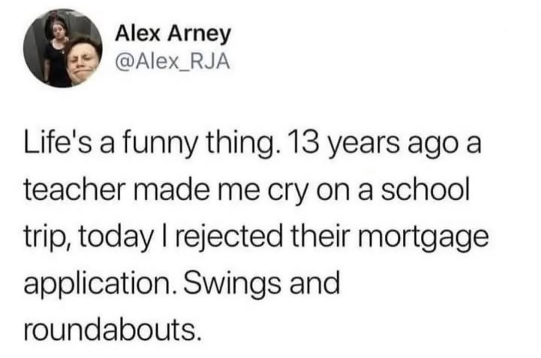 But I guess whoever bullied you was another kid doing it over and over? Not a teache that made you cry during a school trip one day.