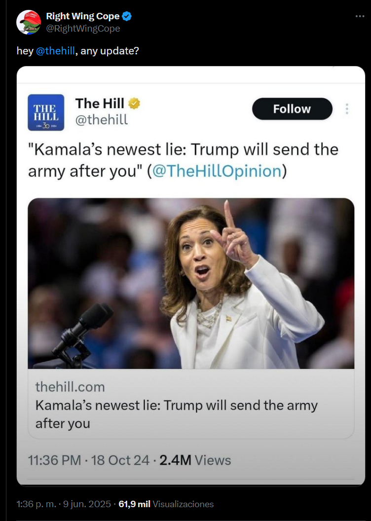 People are already being shot in the streets, and the military has been deployed domestically in blatant violation of the constitution. People are being kidnapped by masked unbadged thugs and disappearing without any court appearance. What more will it take for you to recognize the coup?