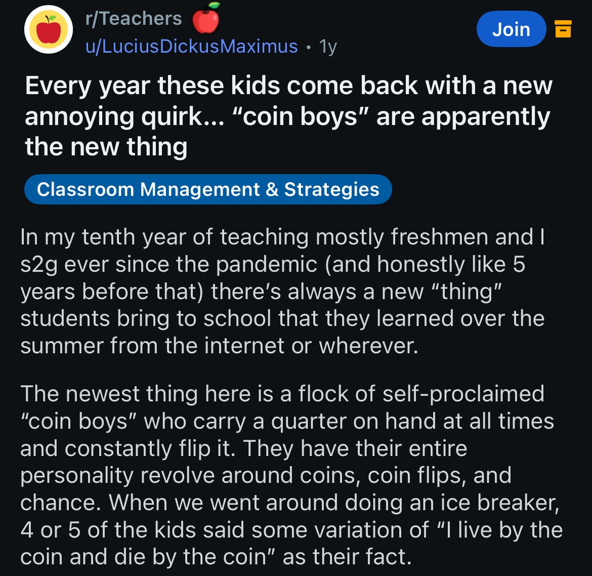 You're telling me that someone who has been teaching for 10 years uses the abbreviation "s2g"?