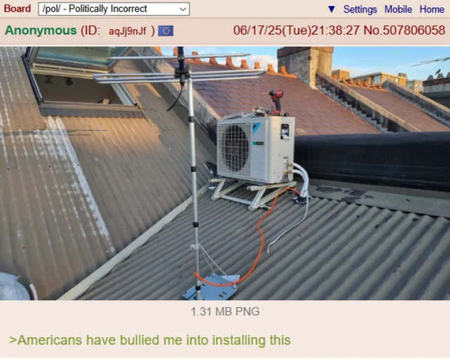 It could be a barn conversion air bnb, because what idiot in the UK would put that on a roof they were planning on living under? But the contract looks way too urban for that. Makes no sense.