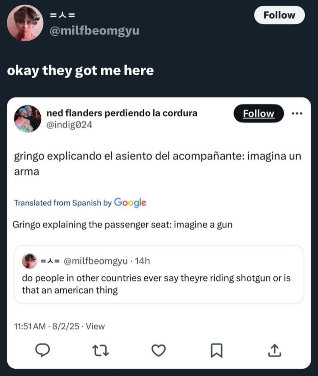 Whenever someone says "Shotgun" I can only think of the drive-by scene in Boyz 'n Da Hood.