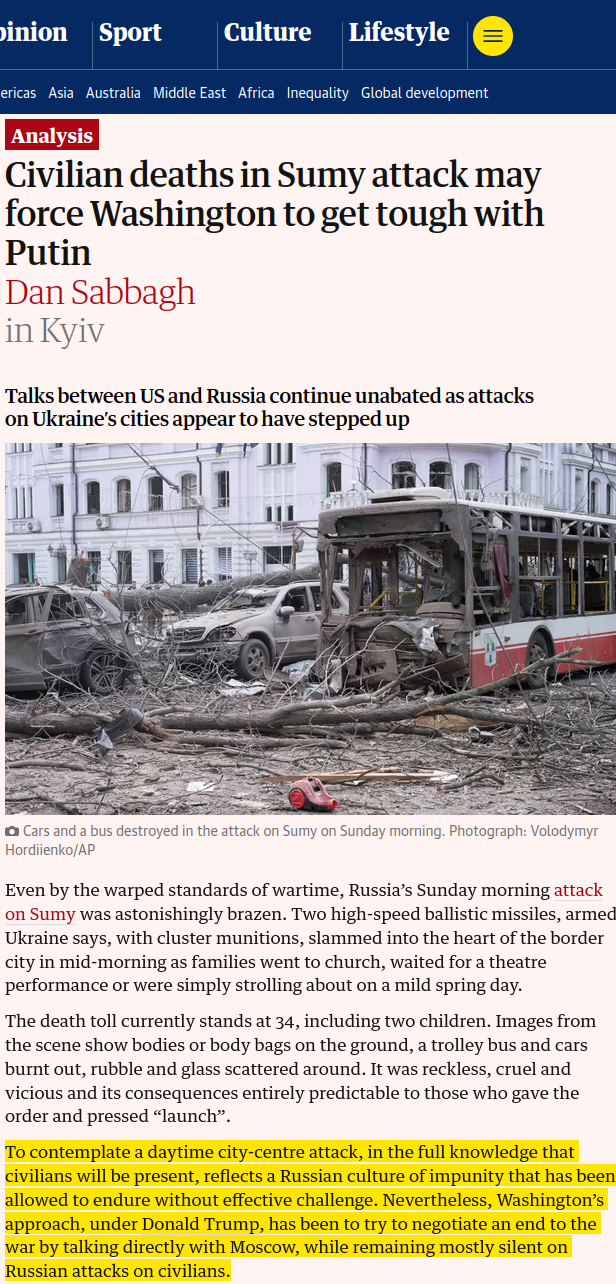 TheGuardian is still claiming only Russia would ever bomb civilians in broad daylight.
