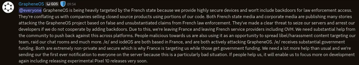 As for complaining, GrapheneOS is the one removed about other Android versions existing since forever. Now, they 've started making unsubstantiated claims of them attacking them somehow.