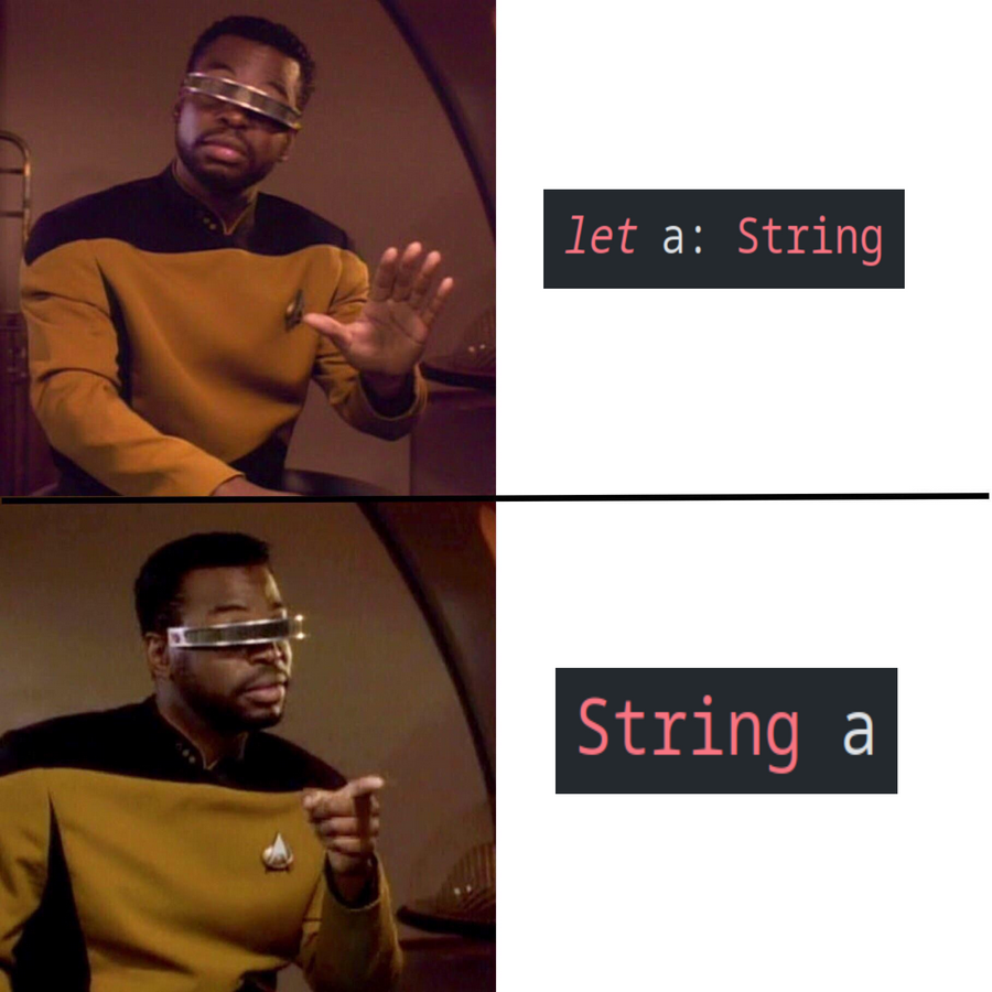 Also useful when the types are optional, like Python. Though they don’t use any let or var or anything so maybe throw that entire point out the window