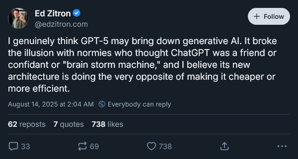 “AI is the exact opposite of a solution in search of a problem,” he wrote on X. “It’s the solution to far more problems than its developers even knew existed … AI is turning out to be the missing piece in a large number of important, almost-completed puzzles.”