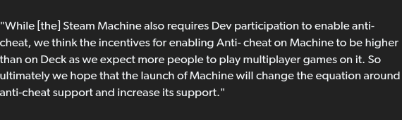 I mean, Valve could explicitly say that they have some trusted hardware and software stack or something and let games know whether the environment's been modified.