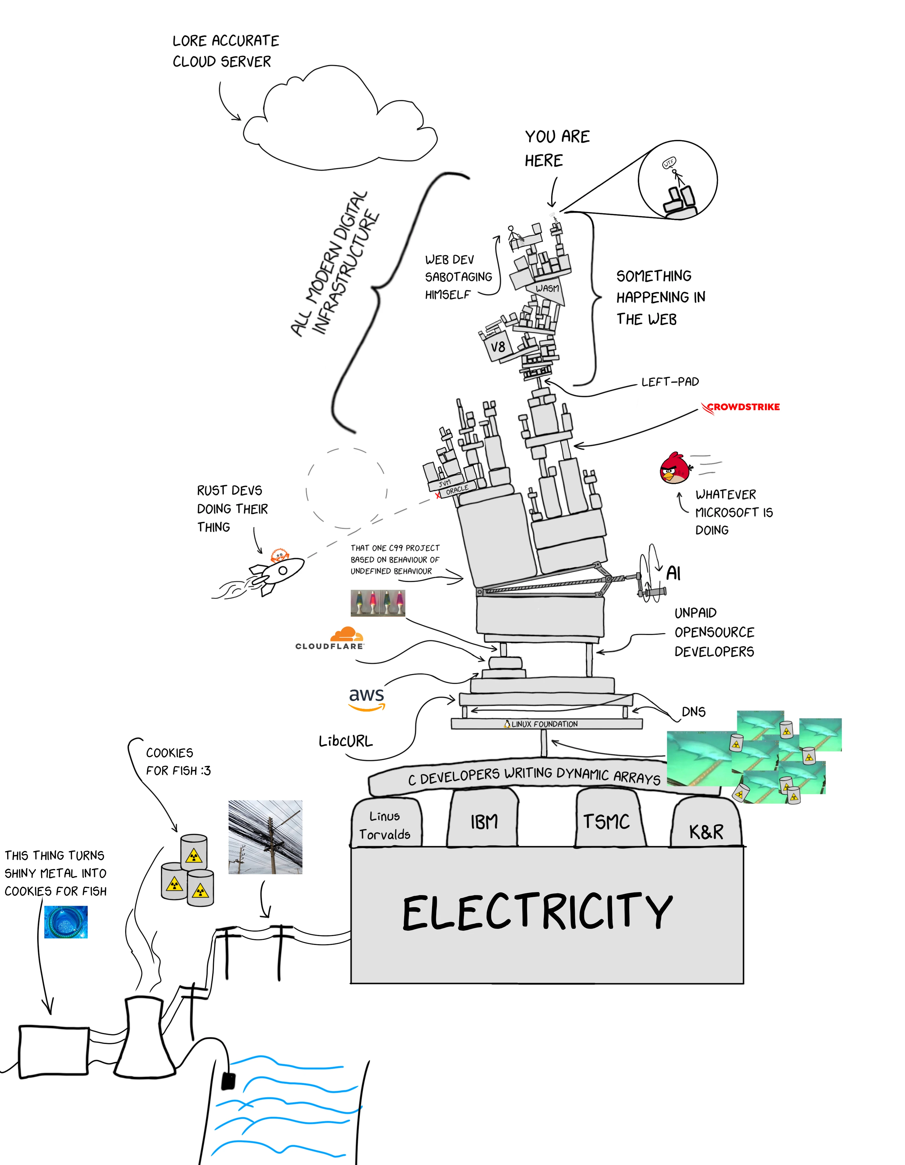 And it always flips aws/cloudflare with the unpaid open source devs. In reality the former keeps failing while the latter doesnt.