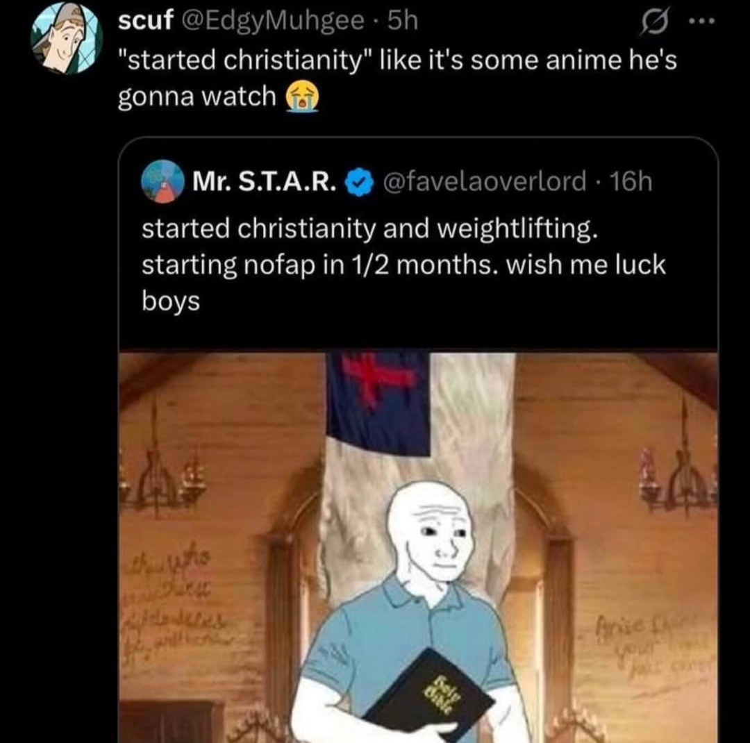 Yeah a lot of them are pretty open about going to Christianity because they're directionless. It offers purpose, direction, and community. That all is something the left has struggled to provide to these people (but it absolutely can). So yeah, talk to the directionless young men in your life about food not bombs and union organizing or the right will.