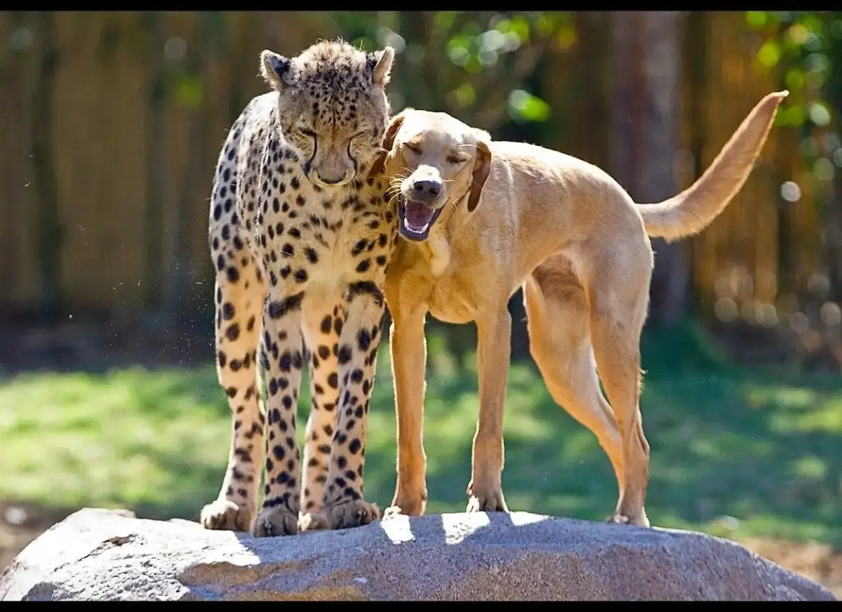 Sounds about right. In zoos they sometimes pair cheetah cubs with yellow lab puppies to help them deal with the stress of... existing while being a cheetah, I suppose.