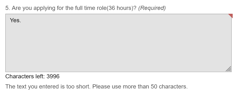 I affirm in the positive, that I am applying for the thirty-six hour full time role.